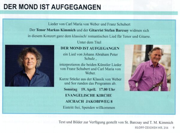 Gastbeiträge der Veranstalter in der Reihenfolge nach jeweiliger Aktualisierung Altochor Philharmonischer Chor Fürstenfeld Altochor – Terminvormerkung für die diesjährigen Konzerte —Trennzeile— Philharmonischer Chor Fürstenfeld, Fürstenfeldbruch, startete ein Crowdfunding zur Finanzierung der Aufführung der Johannespassion am 22.03.2026 und bittet um Unterstützung… Weiterlesen →