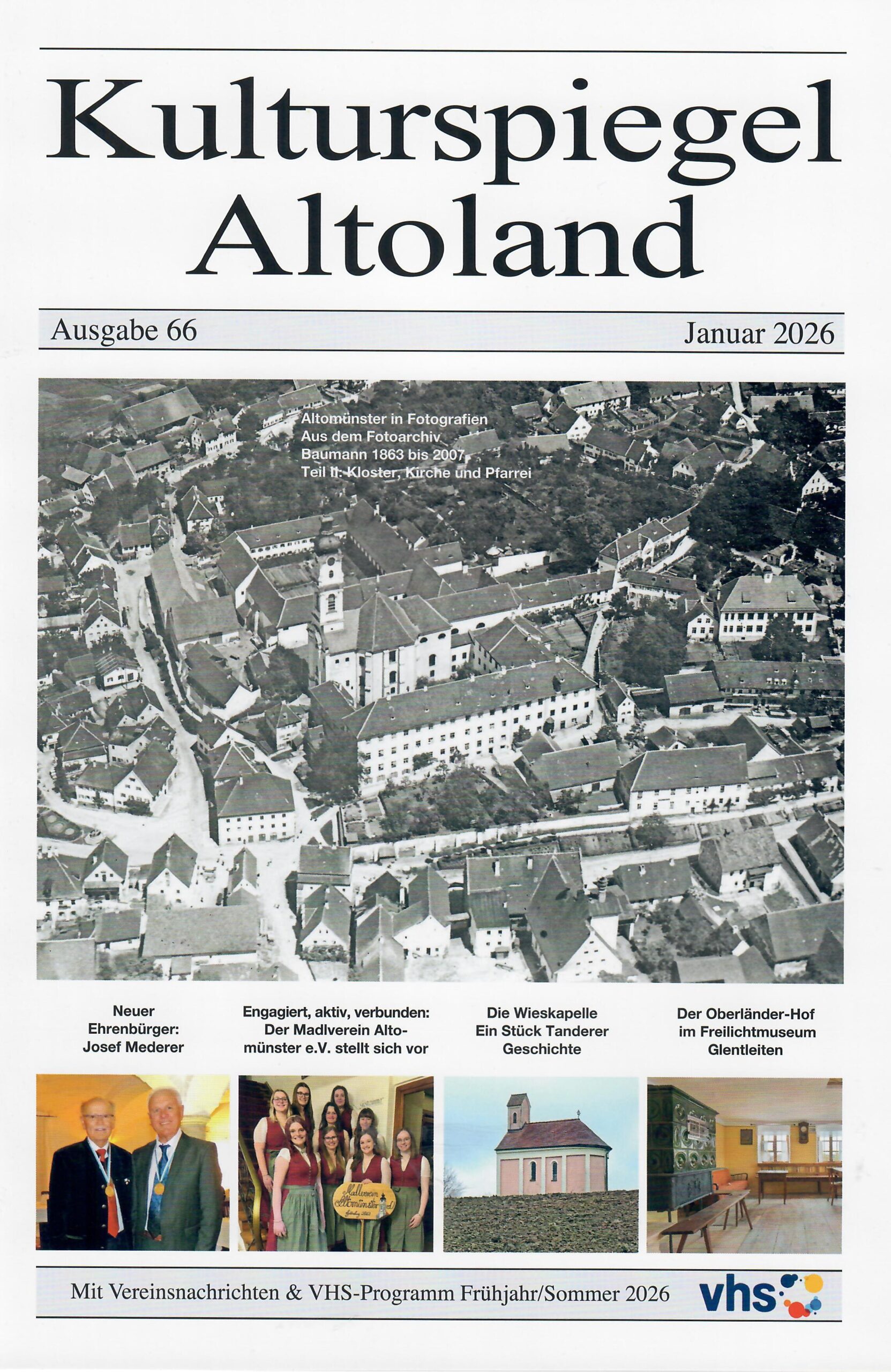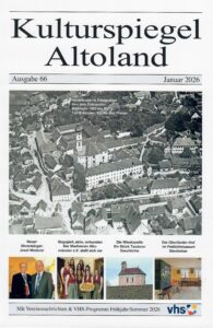 Vor wenigen Tagen wurde die nunmehr 66. Ausgabe des „Kulturspiegel Altoland“ kostenfrei in der Marktgemeinde Altomünster verteilt. Die ausführlicheren Beiträge sowie die Informationen zu Angeboten, Einrichtungen, Veranstaltungen oder Vereinen vermitteln wiederum viel Wissenswertes über Altomünster, über die Region und über das Zeitgeschehen.
