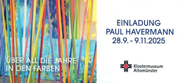 Gastbeitrag Susanne Allers für Klostermuseum Altomünster Führung durch die aktuelle Ausstellung im Museum Altomünster am 3.10.2025 Das Museum Altomünster bietet eine Führung durch die aktuelle Ausstellung am Freitag, 3.10.25 um 15 Uhr an. Der Künstler Paul Havermann führt persönlich… Weiterlesen →
